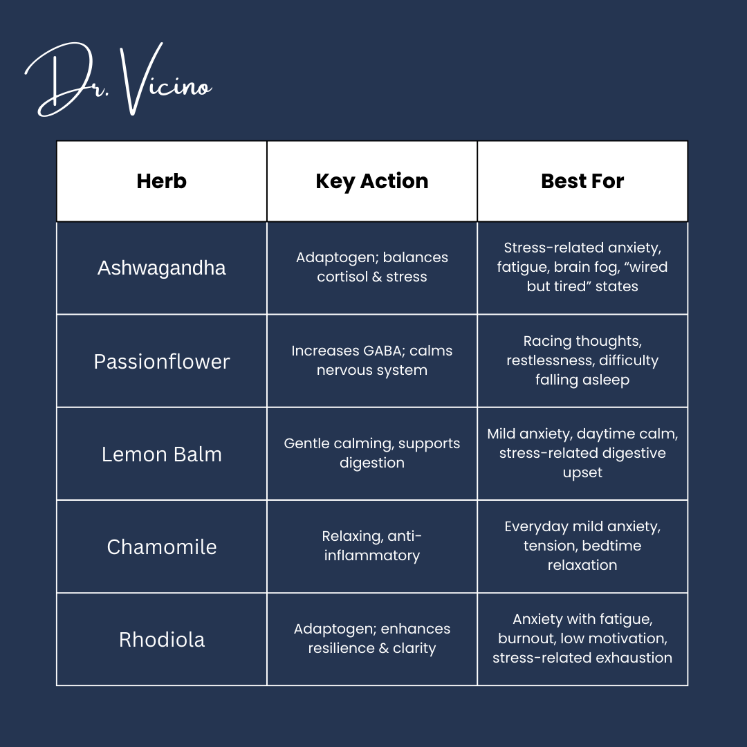 Anxiety can feel overwhelming—racing thoughts, restlessness, a heavy chest, or a constant sense of unease. While lifestyle changes, therapy, and nutrition play essential roles in managing anxiety, nature also offers powerful support. For centuries, herbs have been used to calm the nervous system, regulate stress hormones, and restore balance to the body.
